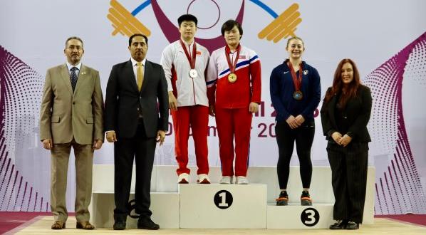 时隔两个月,在杭州亚运会突发肘部拉伤,遗憾退出比赛的廖桂芳,此时尚未完全恢复。朝鲜选手宋国香作为亚运会冠军,实力出众。抓举廖桂芳三把试举108、113、116公斤全部成功,获得银牌。宋国香第三把举起了120公斤,拿下金牌。宋国香第二把举起149公斤,第三把冲击超世界纪录的154公斤失败,但仍获得挺举和总成绩金牌。廖桂芳展现了极高的成功率,三把试举140、145、148公斤全部成功,获得挺举和总成绩银牌。