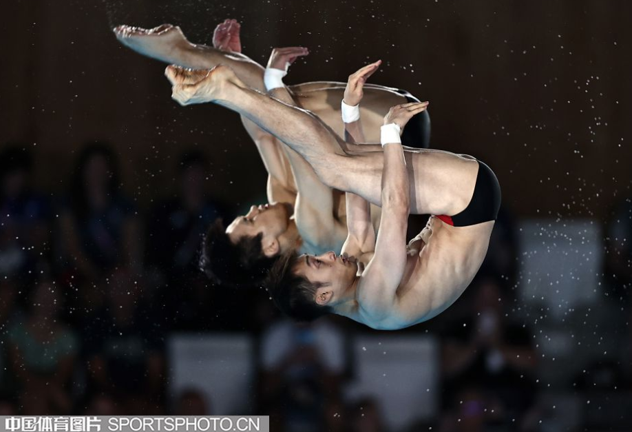 第四跳是让人几乎不能呼吸的一跳,戴利/威廉姆斯的207B直接跳出了93.96的高分,这给紧跟在他们后面出场的杨昊/练俊杰带来了巨大的心理压力。前面戴利和威廉姆斯精彩一跳引起的欢呼声迟迟未落,杨昊/练俊杰不慌不忙,稳稳走上跳台,蓄力、起跳、翻腾、入水,两人“复制粘贴”,一气呵成,这一跳307C拿下了95.88的高分。