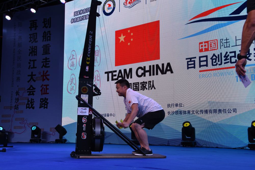 第二个正式比赛项目的参赛者是龙清泉,他曾经在北京、里约奥运会上两次获得男子举重金牌。龙清泉挑战的项目是陆上赛艇滑雪测功仪男子30-39岁年龄组4分钟,这也是滑雪测功仪第一次在长沙进入大众视野。龙清泉虽然第一次接触这一器械,但他显示出良好的领悟力,以726米的距离完成比赛,多次创造举重世界纪录的他也成为赛艇全国纪录的首创者。