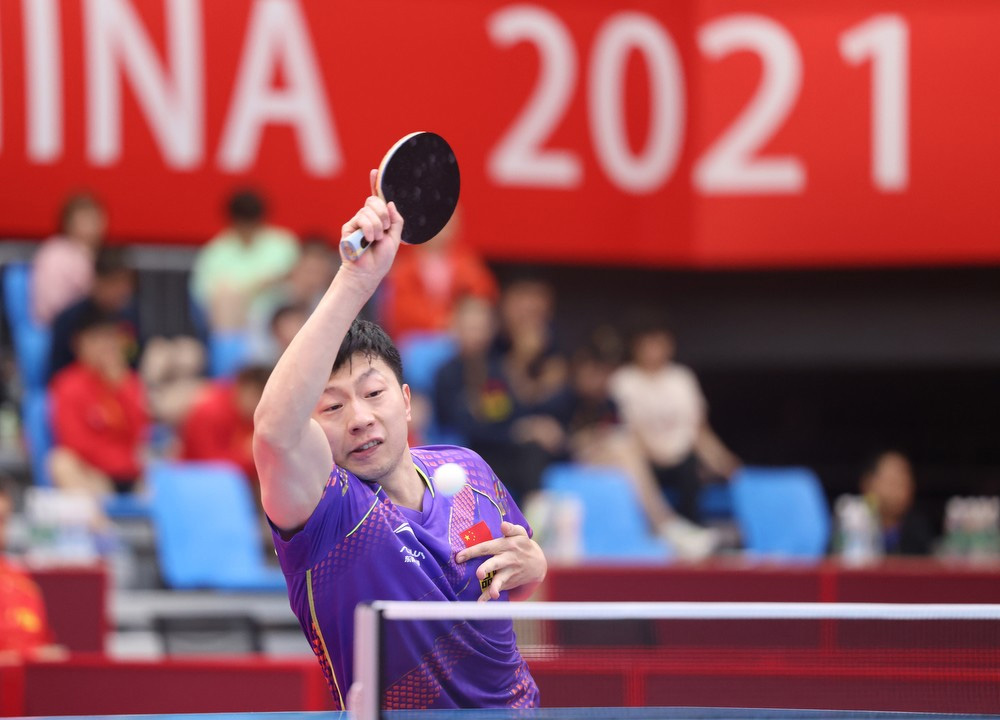 国乒备战东京奥运会热身赛6月23日在山东威海结束,当天进行了团体赛最后一轮的较量。