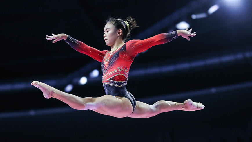 十五运会体操青年组女子全能、女子高低杠平衡木跳马全能决赛在肇庆新区体育中心体育馆举行,广东选手柯沁沁包揽两枚金牌。