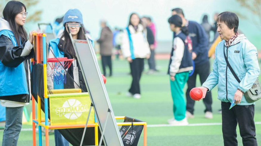 趣味田径赛场则充满欢声笑语。记者抵达时,淮阴师范学院第二附属小学的5男5女团队正合力完成投掷、跨栏、十字跳等项目,按总时长排名的规则让大家既紧张又兴奋。“我们把传统田径项目包装成趣味游戏,能提升学生的运动兴趣与团队协作能力。”教练郑晓晓说,看着孩子们为了共同目标齐心协力,她知道这种“竞技+趣味”的形式选对了。